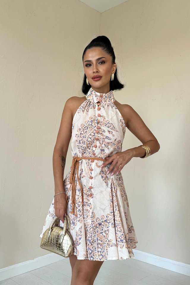 Ekru Halter Yaka Elbise