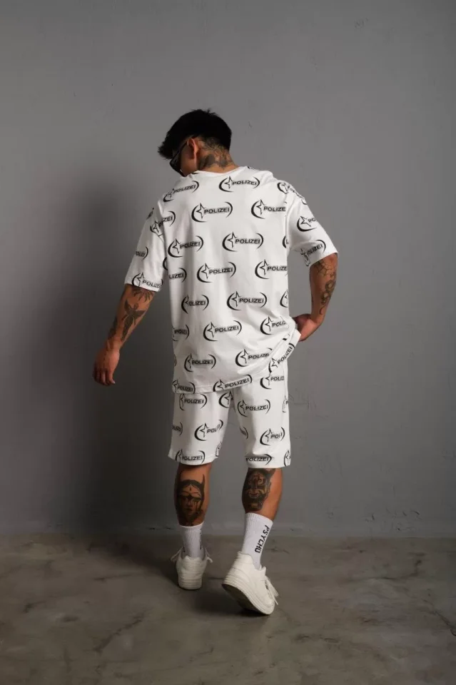 Erkek Baskılı İkili Şortlu Takım – Beyaz