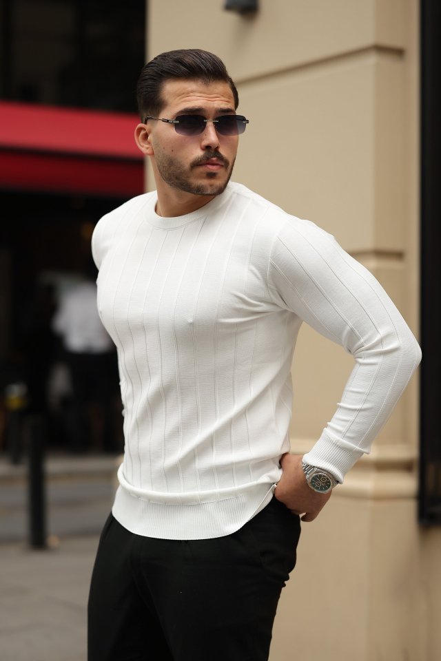 Erkek Bisiklet Yaka çizgi Kabartmalı Uzun Kollu Triko
