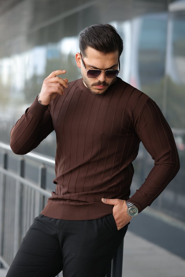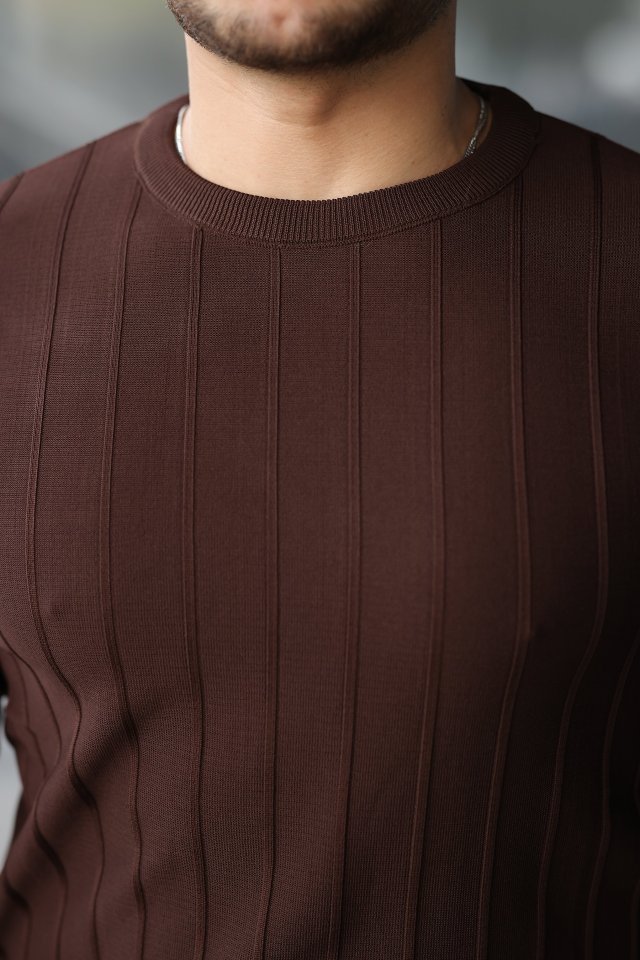 Erkek Bisiklet Yaka çizgi Kabartmalı Uzun Kollu Triko