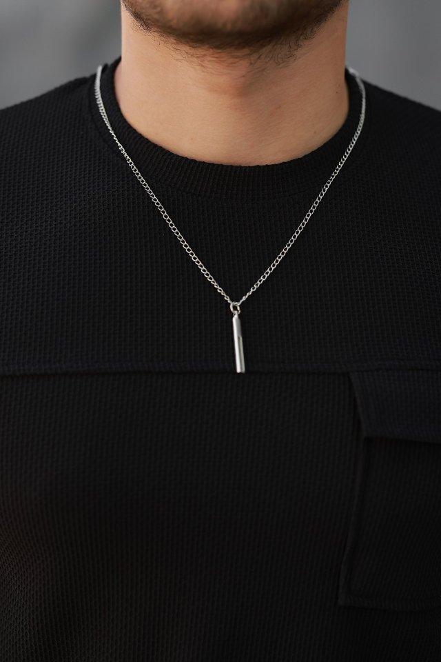 Erkek Cepli Kolyeli Kısa Kollu örme Kumaş T-shirt