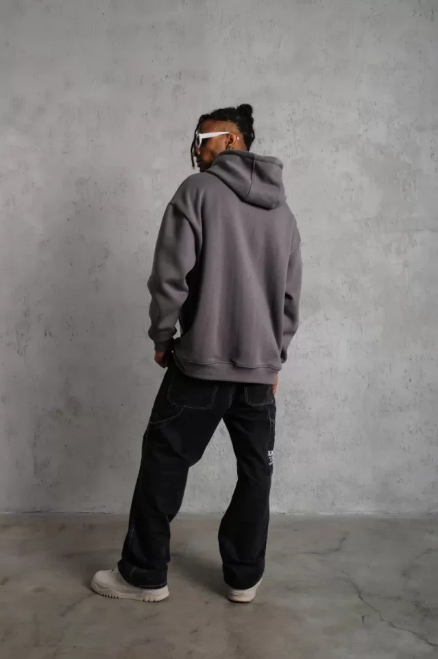Erkek Düz Kapüşonlu Sweat - Beyaz