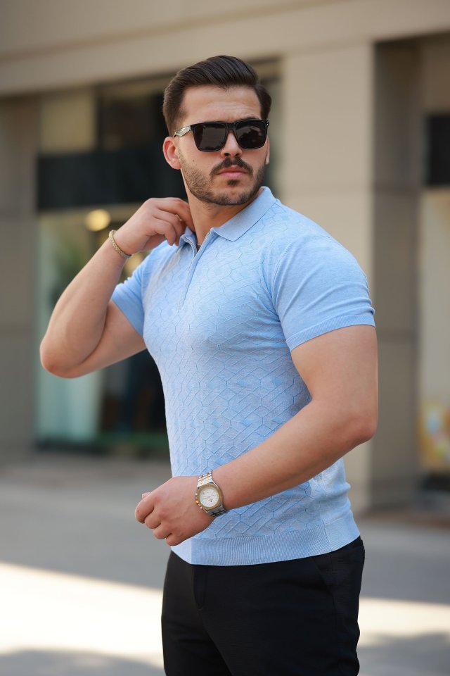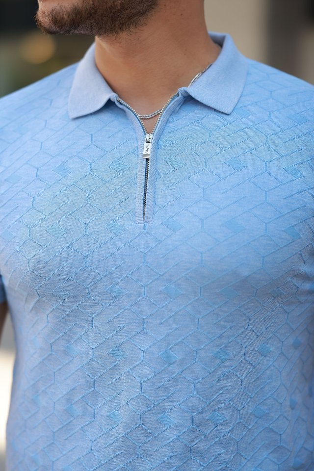 Erkek Yakası Fermuarlı Kısa Kollu T-shirt