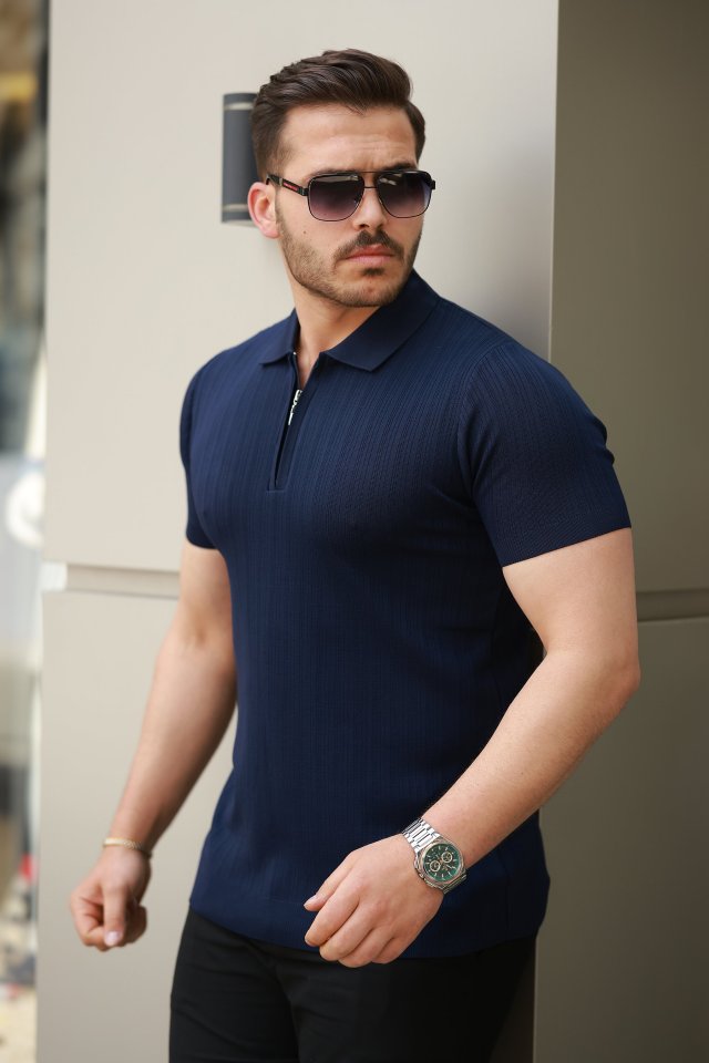 Erkek Fermuar Yakalı Kısa Kollu Tişört