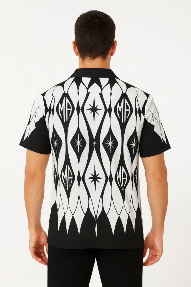 Erkek İki İplik Kumaş Dijital Baskılı Gömlek – Siyah