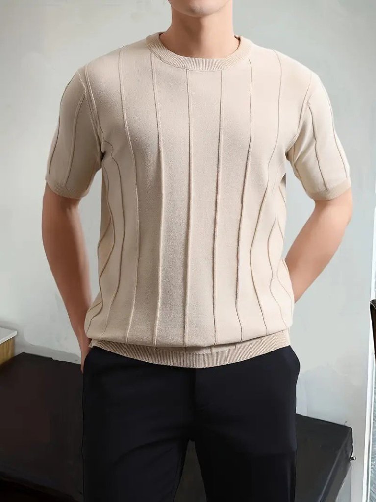 Erkek Kısa Kollu Bisiklet Yaka çizgili Triko Bluz