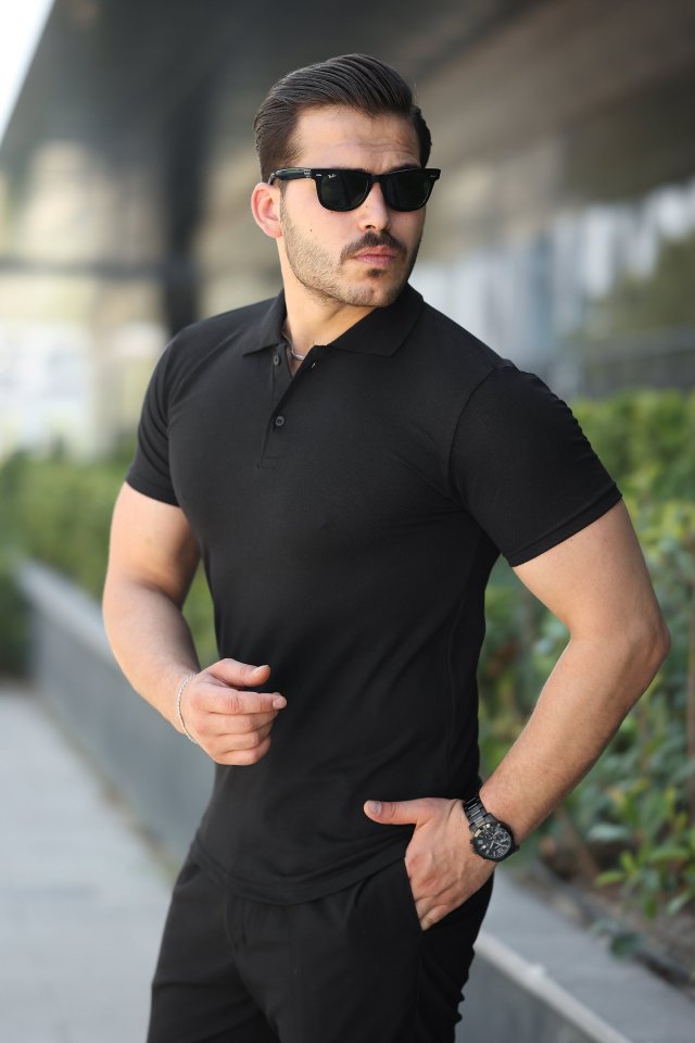 Erkek Hakim Yaka Dokuma Pamuklu Kumaş Kısa Kollu T-shirt