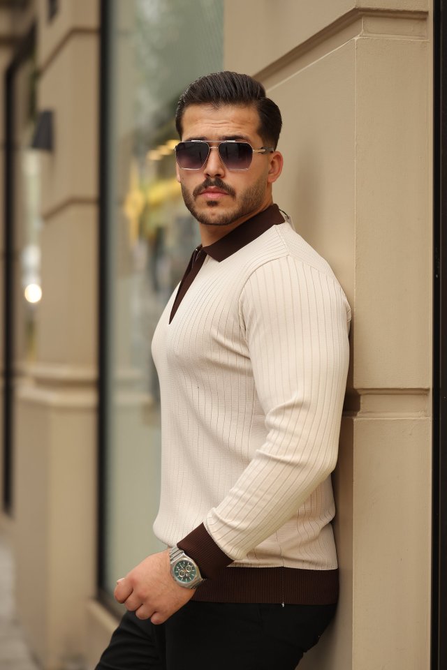 Erkek Kol Ve Yaka Detaylı Uzun Kollu Triko