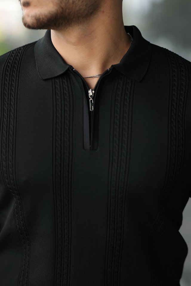 Erkek örgü Desen Fermuar Yaka Uzun Kollu Triko