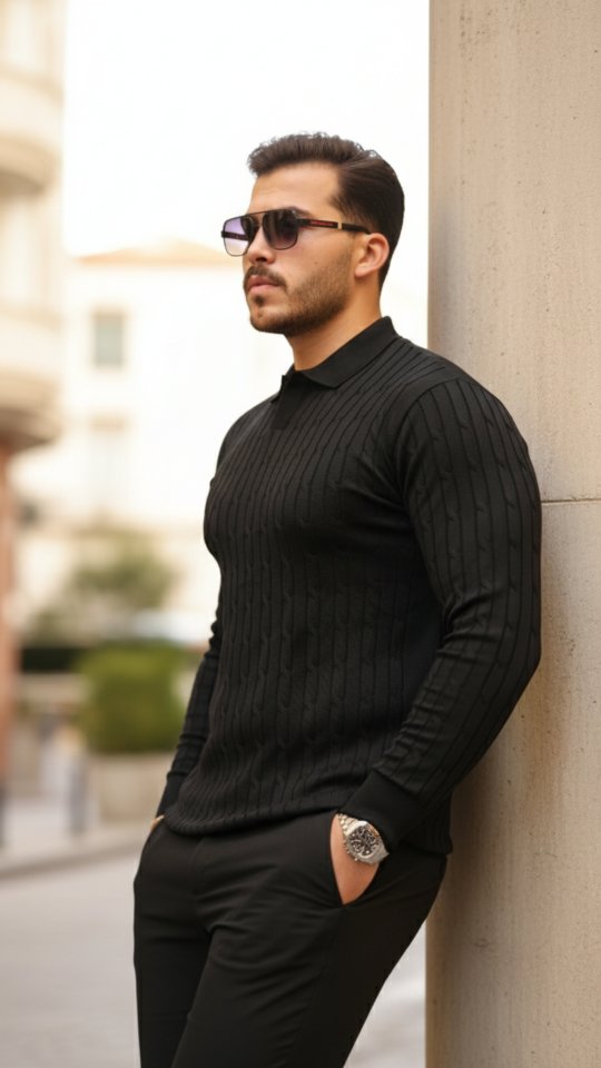 Erkek Saç örgü Desen Uzun Kollu Triko