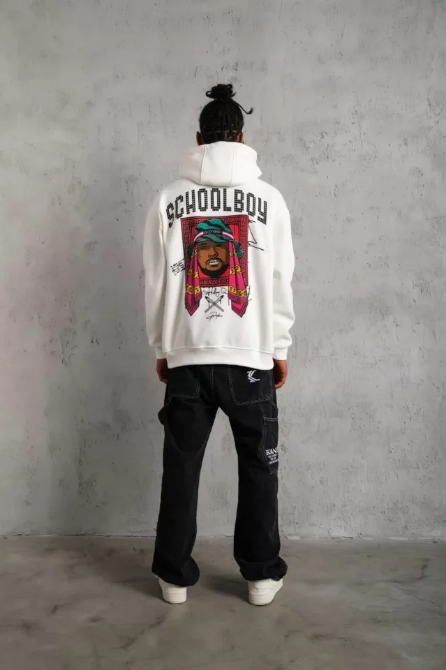 Erkek SCHOOL BOY Baskılı Kapüşonlu Sweat – Beyaz