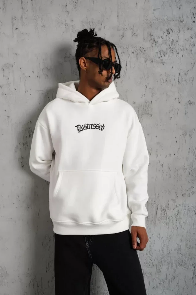 Erkek Üç İplik Baskılı Kapüşonlu Sweat – Beyaz