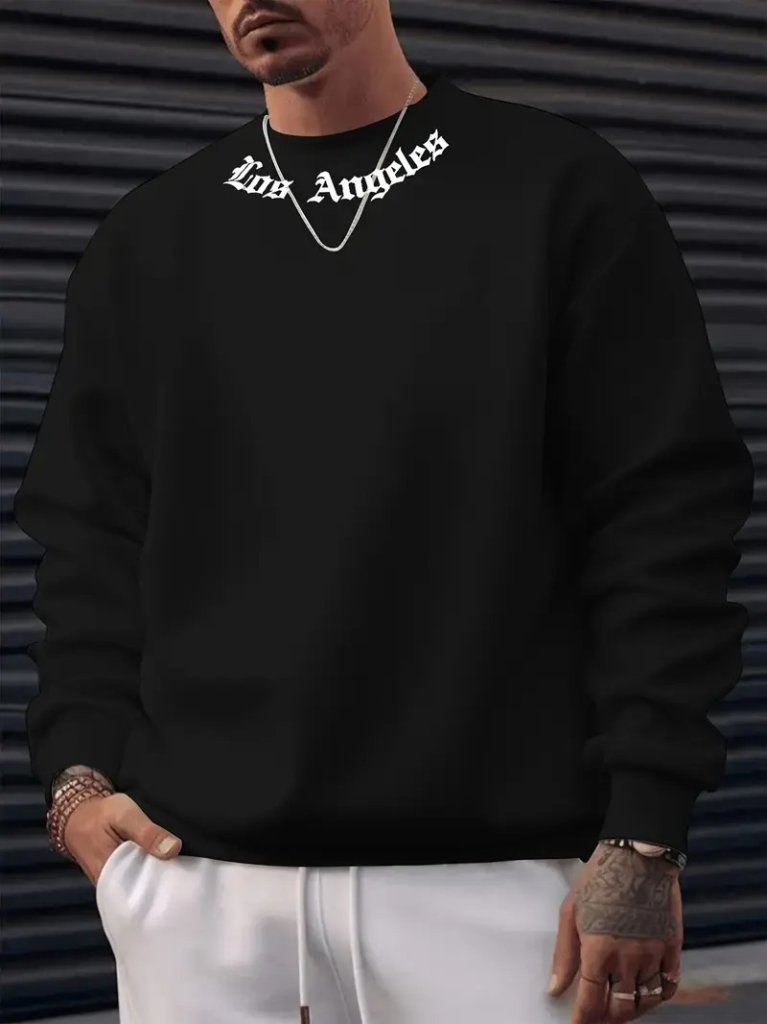 Erkek Uzun Kollu Bisiklet Yaka Yazı Detaylı Iki Iplik Bluz