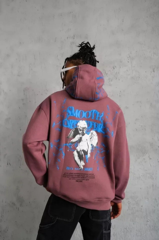 Erkek Yıldırım Baskılı Kapşonlu Sweat – Gül Kurusu