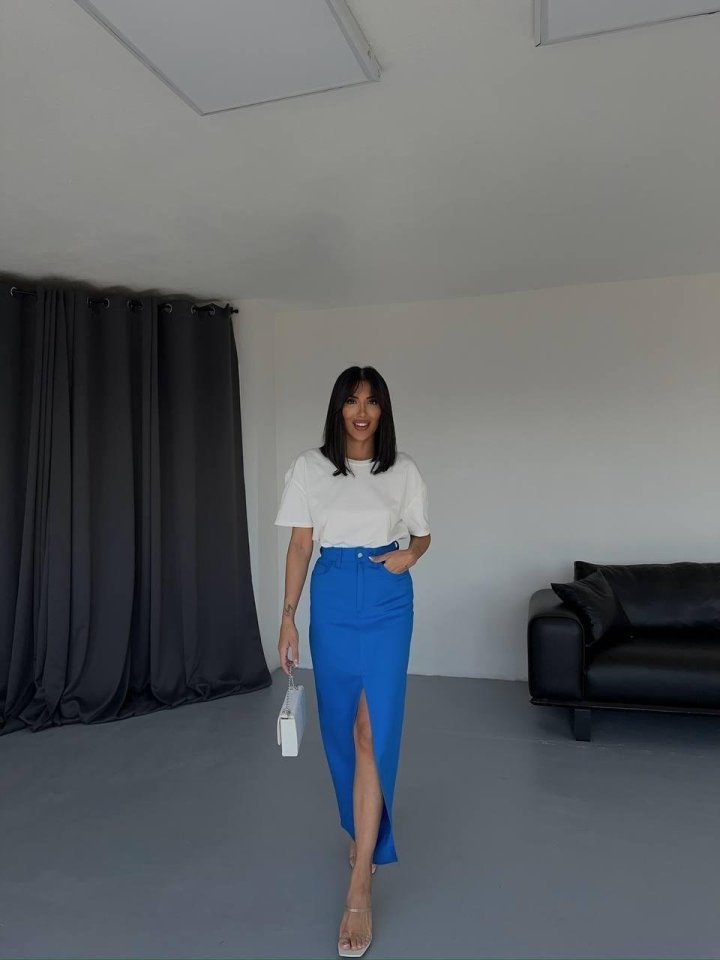 GABARDİN UZUN ÖNDEN YIRTMAÇLI ETEK – Saks