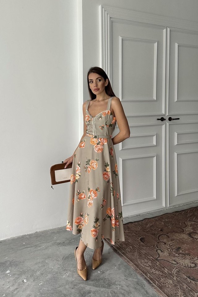 Haki İnce Kemer Detaylı Elbise