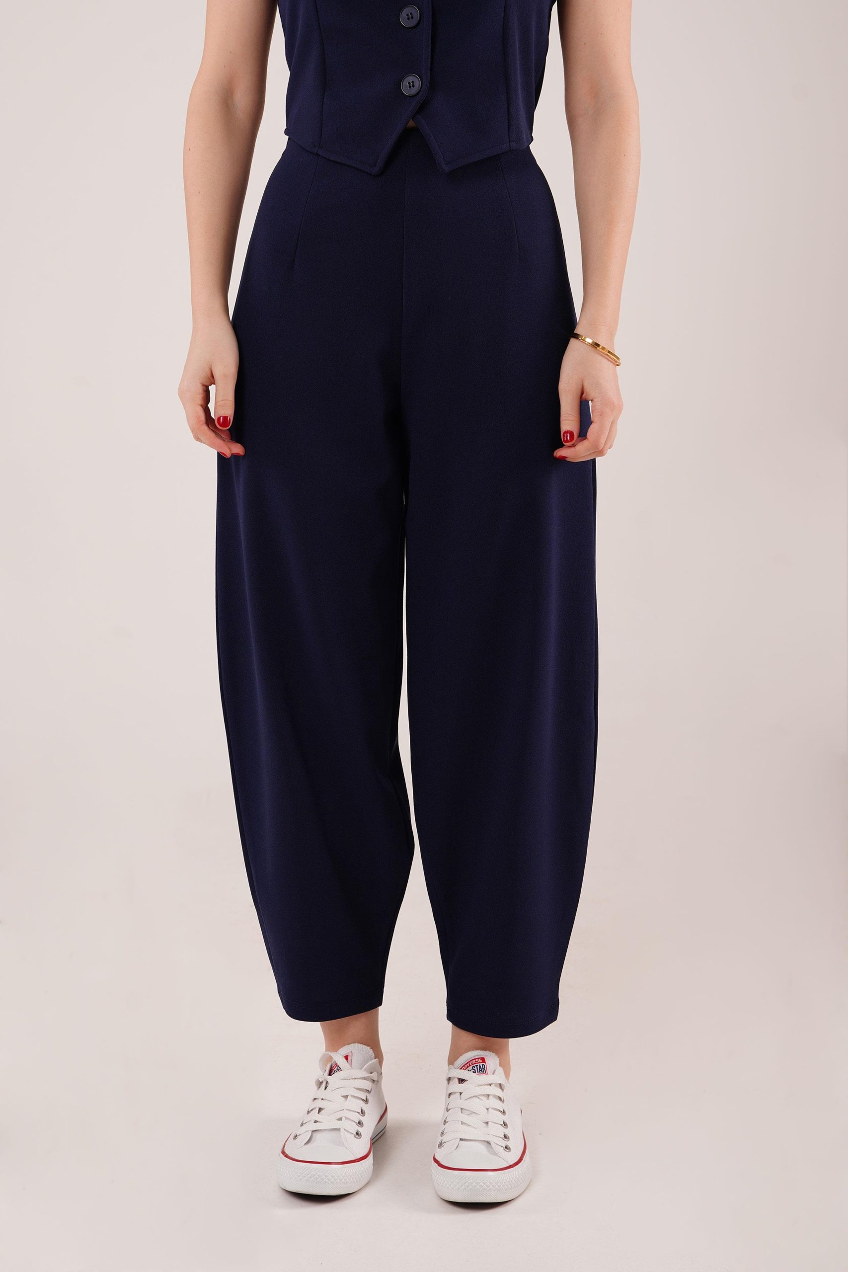 Kadın Yüksek Bel Krep Kumaş Bol Paça Pantolon
