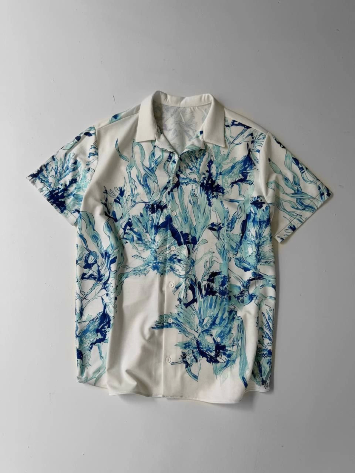 İki İplik Kumaş Baskılı Gömlek – Beyaz