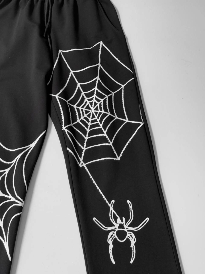İki İplik Kumaş Örümcek Baskılı Esofman – Siyah