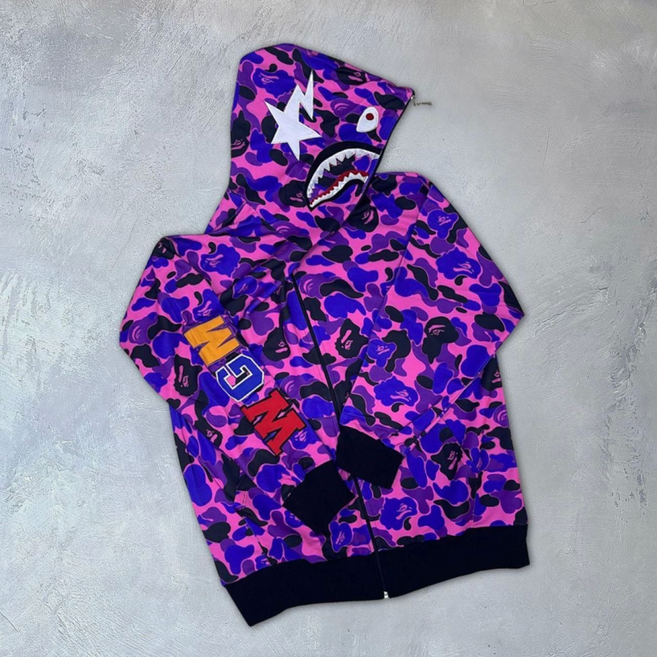 İki İplik Mevsimlik Bape Nakişli Eşofman Pantolon - Mor