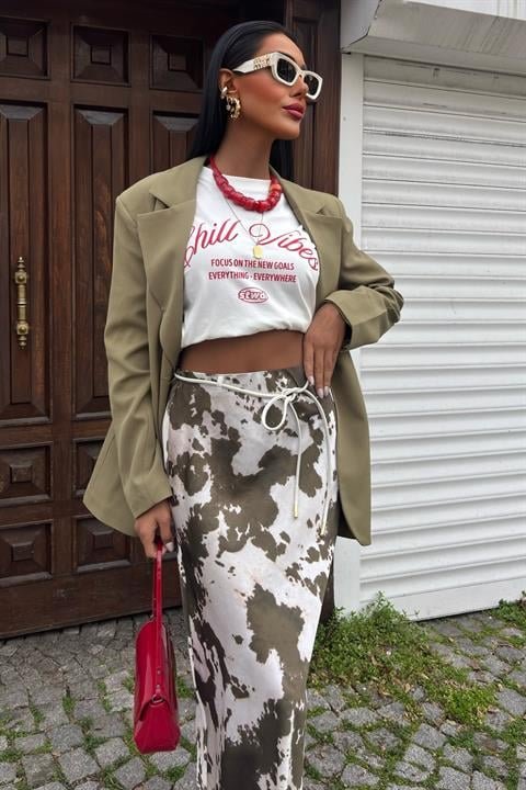 İnce Deri Kemerli Chanel Saten Etek 4050