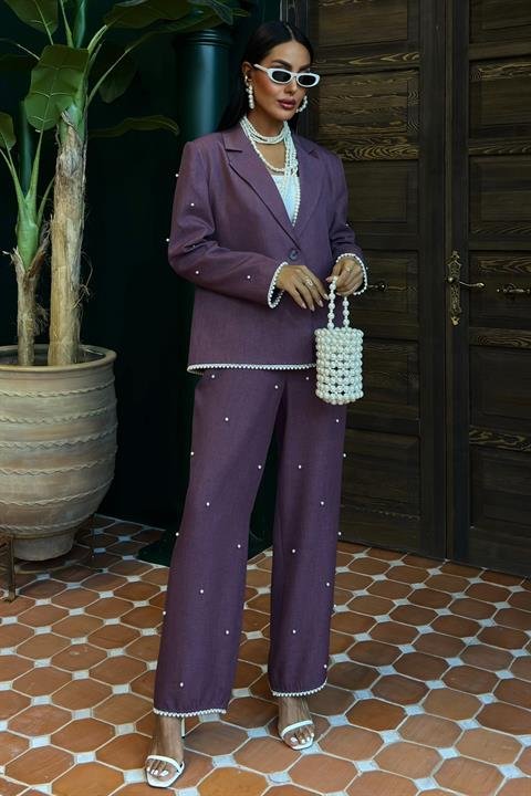 İnci Detaylı Ceket Pantolon Keten Takım 10124