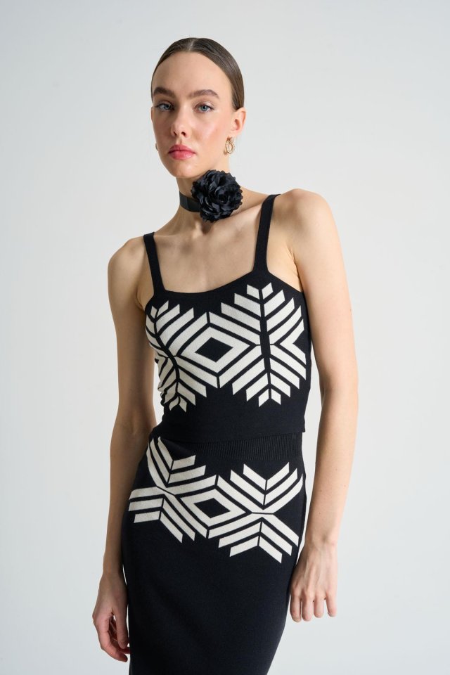 Jakarlı İnce AskılıTriko Takım – Siyah-Beyaz Kayısı