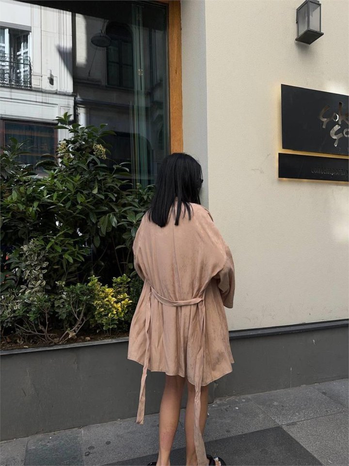 JAKARLI KİMONO – ŞORT TAKIM – Bej