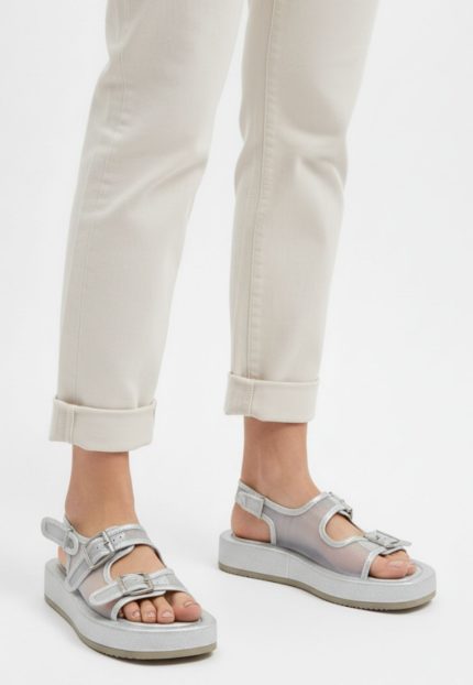 Sinna Gümüş Cilt Tül Detaylı Sandalet