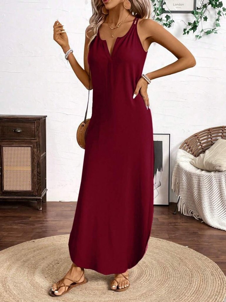 Kadın Askılı Yuvarlak Yaka Asimetrik Detaylı Viskon Elbise