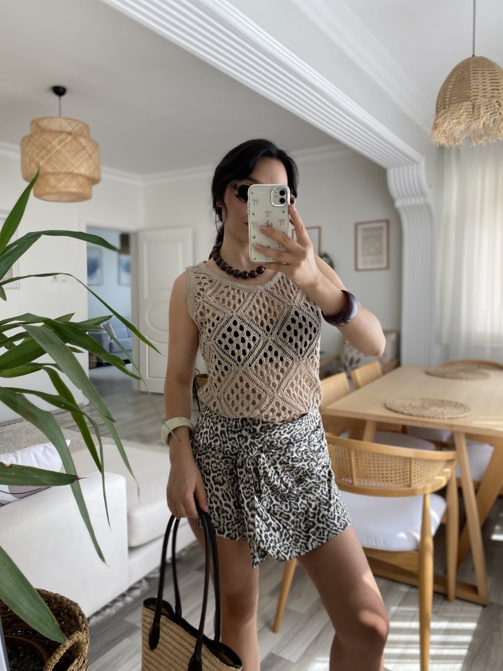 Modelin Ölçüleri: Boy:165, Kg:55, Göğüs:90, Bel:72, Kalça: 100