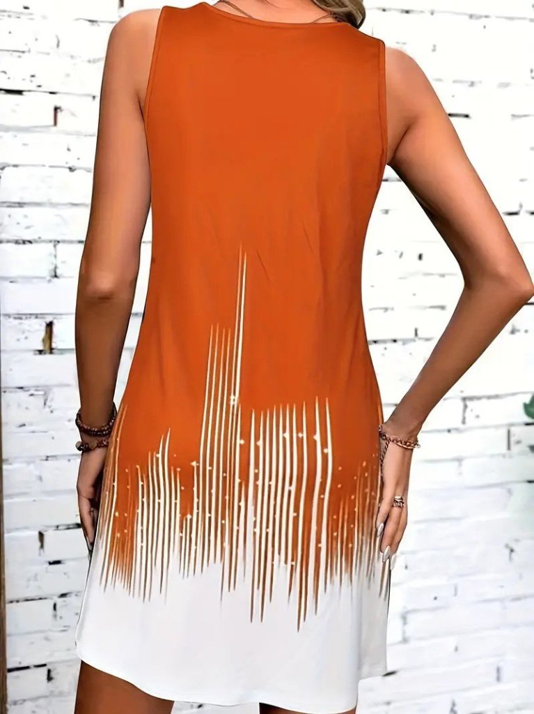 Kadın Kolsuz V Yaka Eteği Püsküllü çizgi Desen Triko Elbise