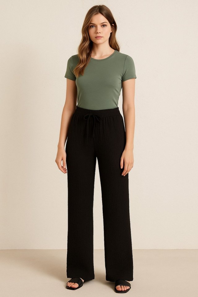 Kadın Yüksek Bel Krep Kumaş Bol Paça Pantolon