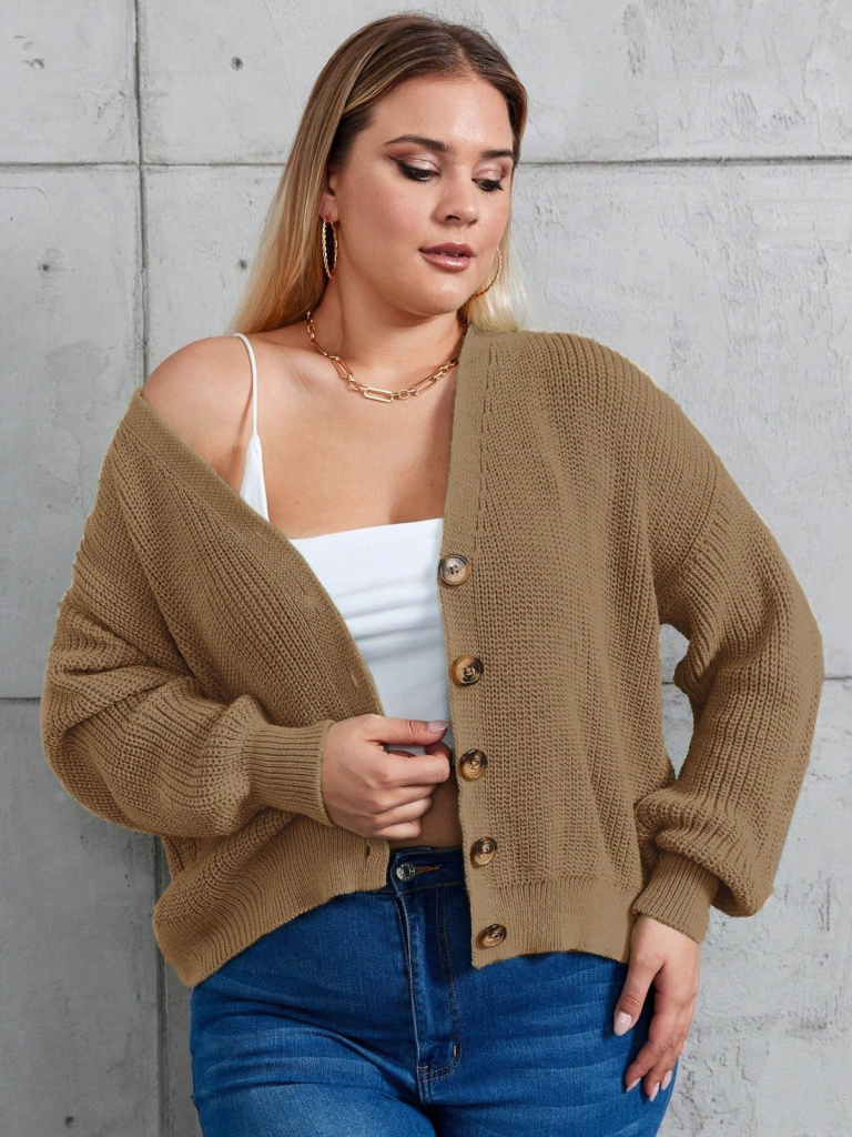 Kadın Beş Düğme Büyük Beden Triko Hırka