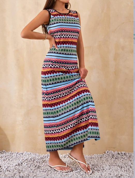 Kadın Bisiklet Yaka Cizgi Desen Süprem Elbise