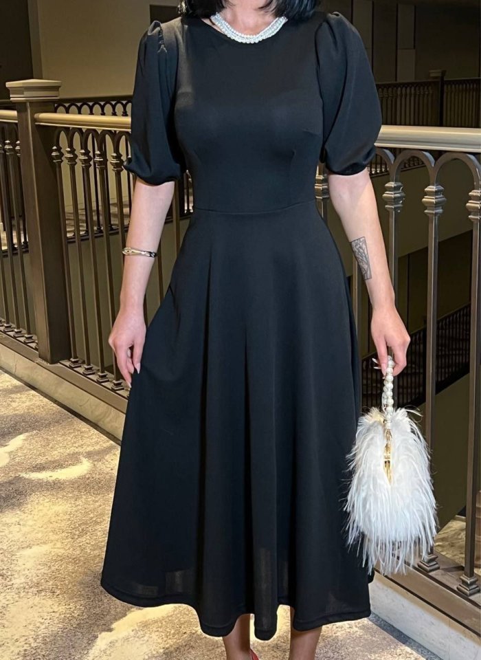 Kadın Bisiklet Yaka Kısa Kol Lastik Detay Uzun Elbise