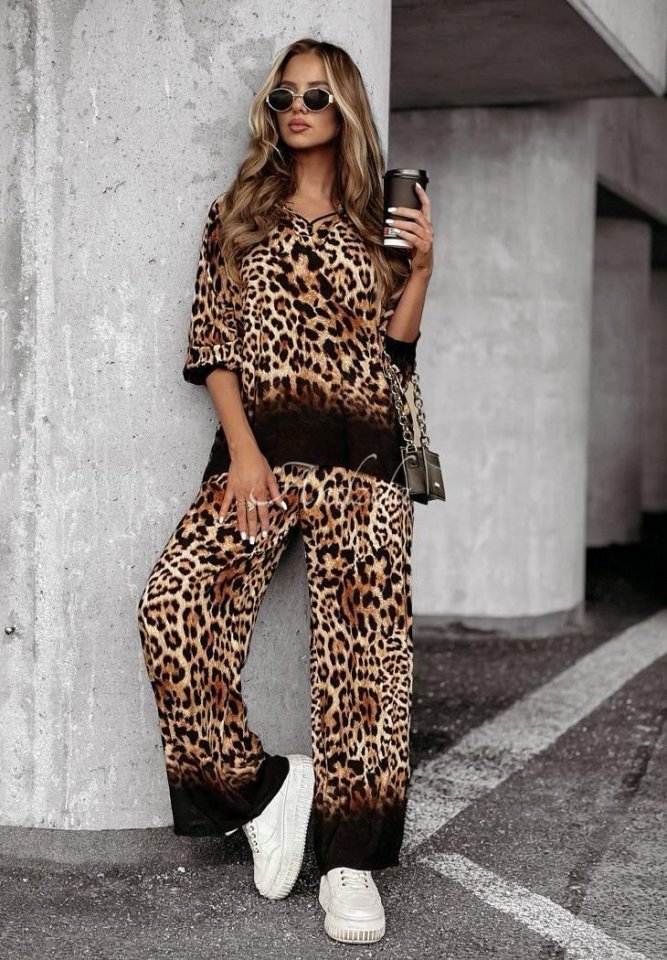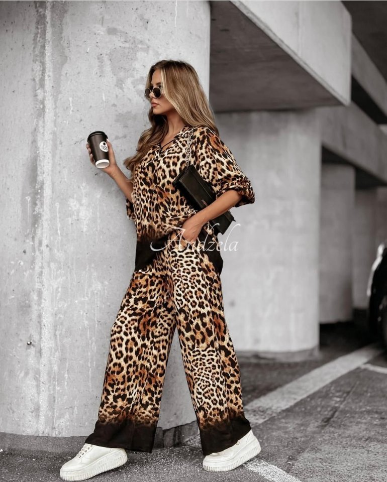 Kadın Dalgıç Kumaş Leopar Desenli Fermuar Detaylı Ikili Tamım