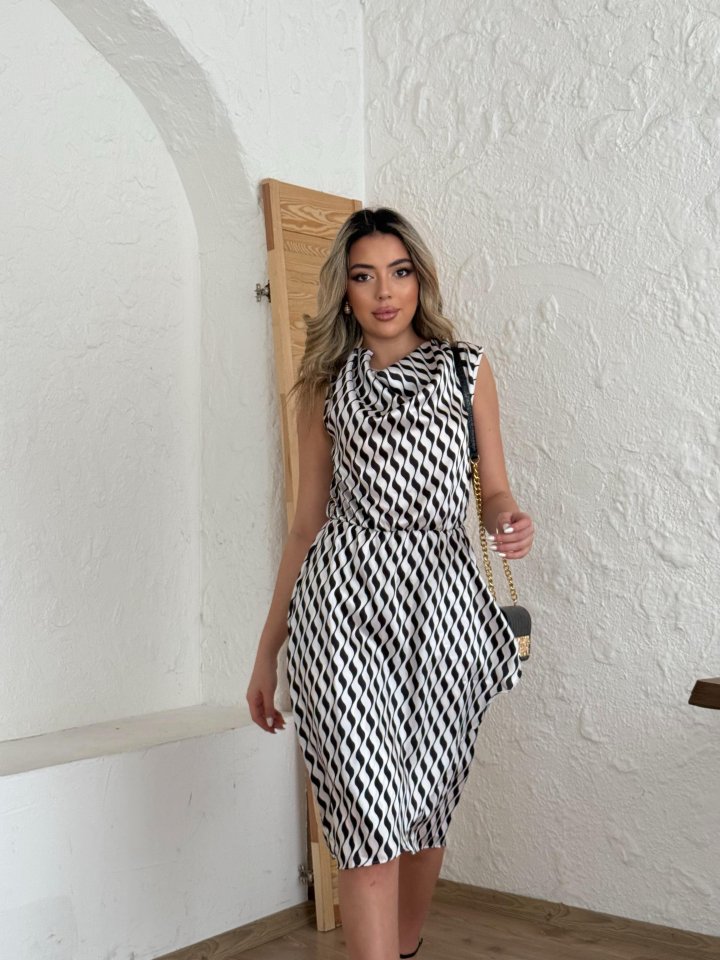 Kadın Sıfır Kol Sıfır Yaka Drape Detaylı Midi Janjan Krep Elbise