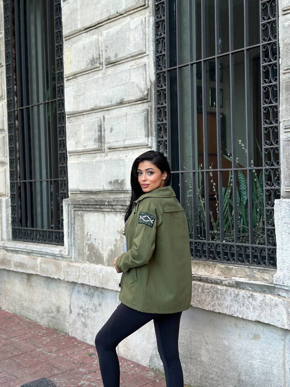 Kadın Ek Parça Kapüşon Kol Arma Detay Gabardin Ceket