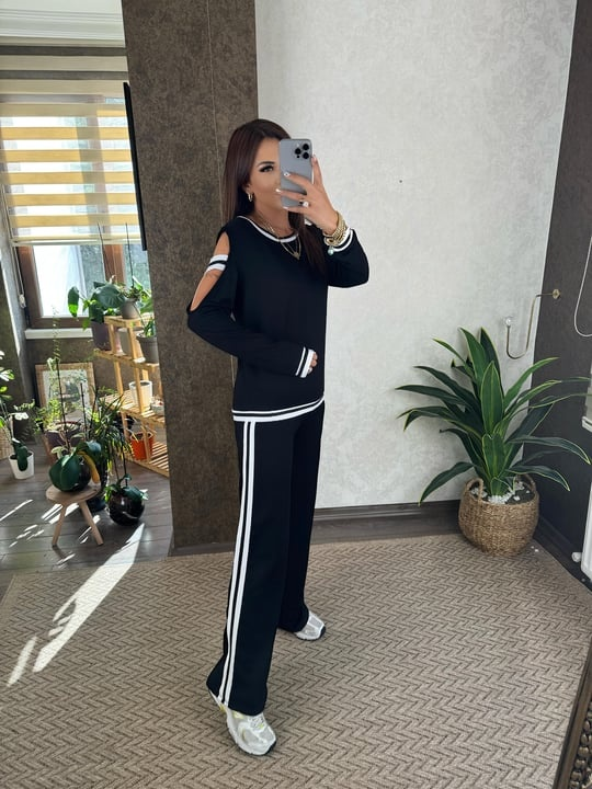 Kadın Iki Iplik Penye Kumaş Kol Detaylı Ribanalı Ikili Takım