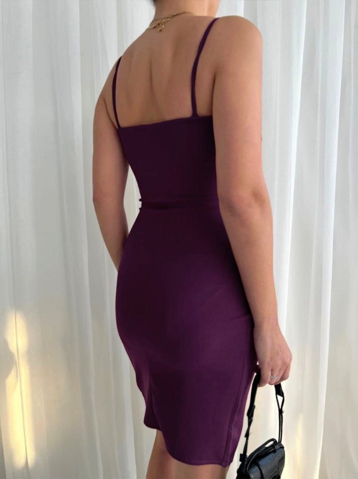Kadın İp Askılı Yırtmaçlı Büzgülü Elbise
