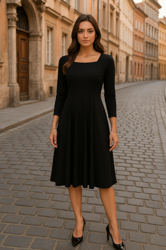 Kadın Kare Yaka Truvakar Kol Fırsat ürün Midi Boy Elbise