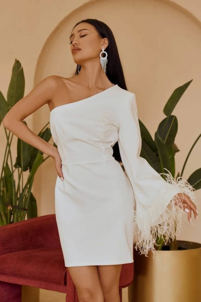 Kadın Kayık Yaka Kolu Salaş Püskül Detay Kalem Mini Elbise