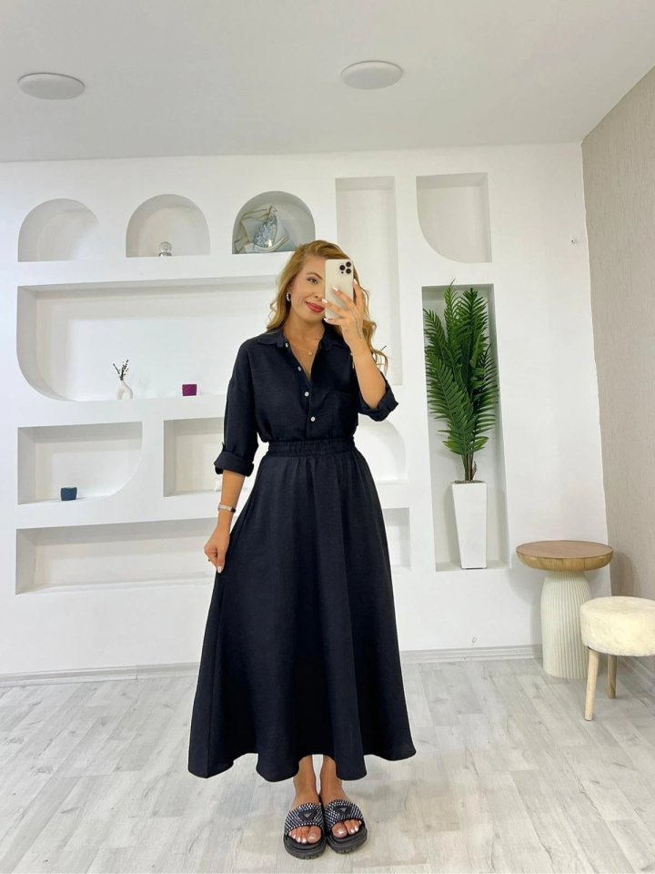 Kadın Keten Kumaş Gömlek Ve Etek Ikili Takim