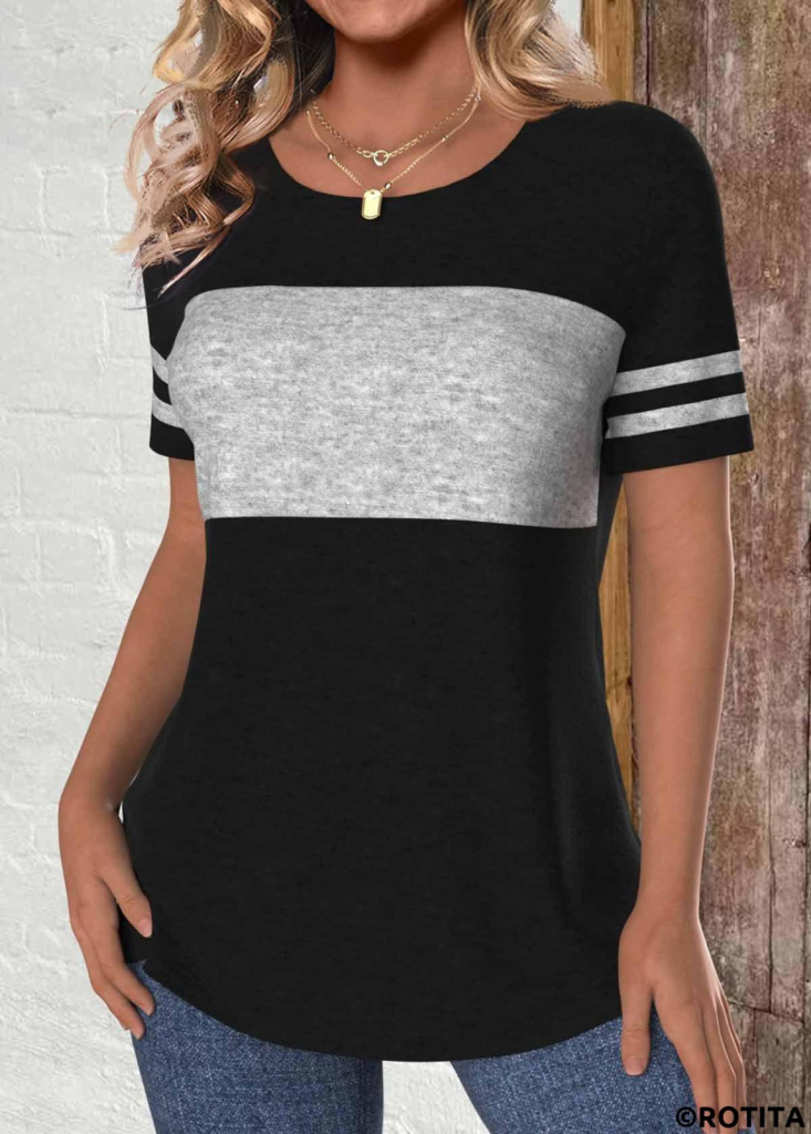 Kadın Kısa Kollu Bisiklet Yaka çift Renkli Viskon Bluz