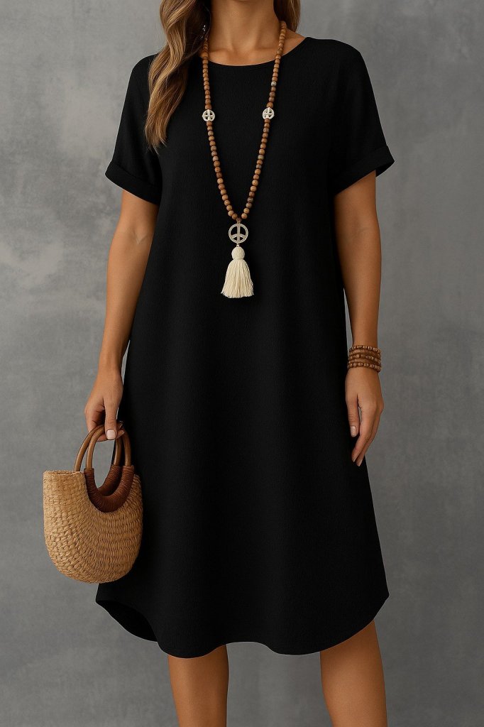 Kadın Kısa Kollu Kayık Yaka Bürümcük Elbise