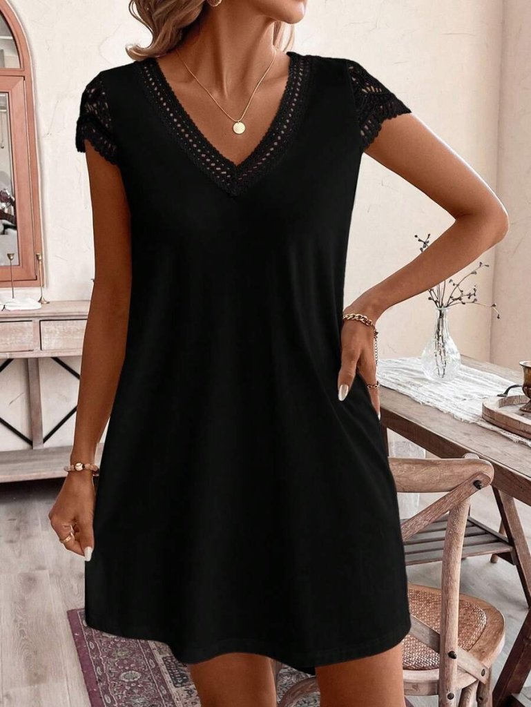 Kadın Kısa Kollu V Yakalı Viskon Elbise