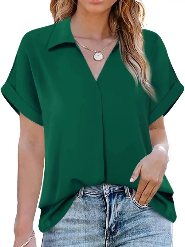 Kadın Kısa Kollu Yakalı Uzun Sandy Bluz