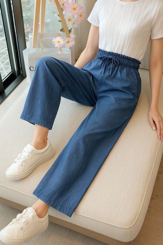 Kadın Yüksek Bel Krep Kumaş Bol Paça Pantolon