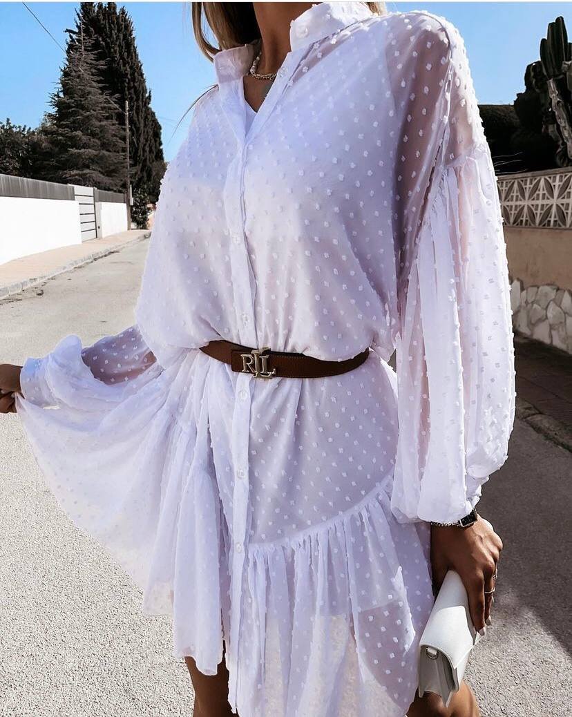 Kadın Puantiyeli Içi Astarlı Tül Elbise